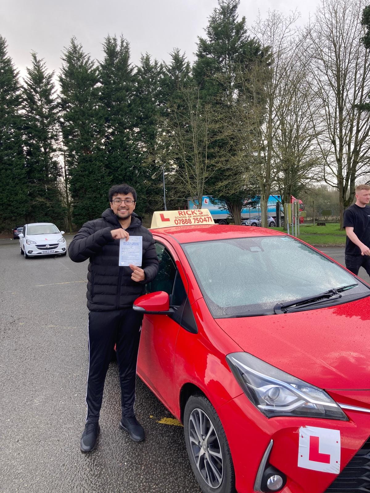 Passed my test in first go today, amazing work by Rick. I guess I got some life time driving lessons. Ricks approach to teach his students is unmatchable, thorough & Polite. Thanks Rick