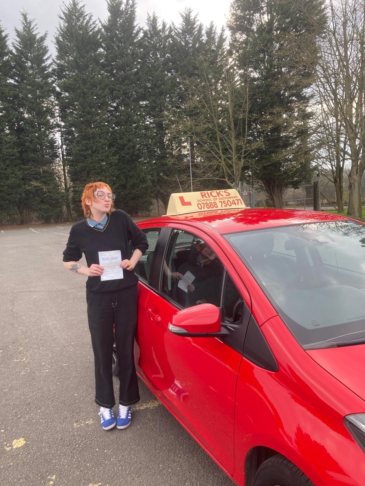 When I had my first lesson I was petrified of even getting in the car but ricks driving school helped me overcome that fear, we’ve had plenty of disagreements, but plenty of laughs and always puts me at ease thank you for everything soo much and I would 100% recommend this driving school thanks again. From Emma Bull